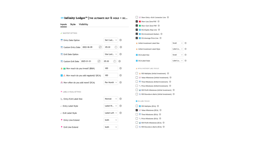 Infinity Ledger™ is the ultimate TradingView indicator for long-term investment tracking.